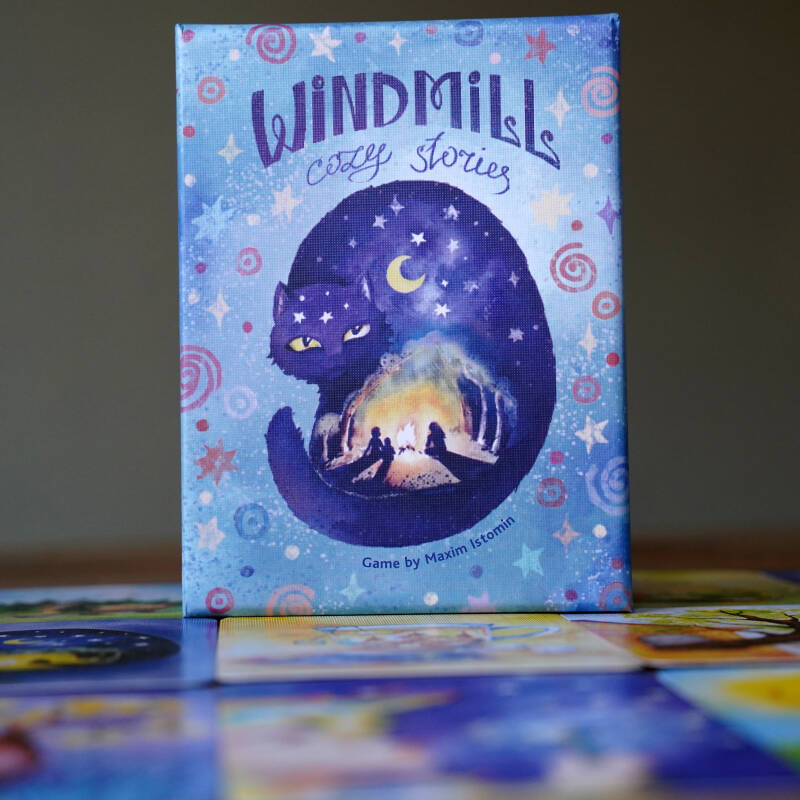 Windmill: Cozy stories is een storytelling spel waarbij je een verhaal vertelt over een kaart in de hoop dat een andere speler, het liefst de laatste, raadt over welke kaart jouw verhaal gaat.