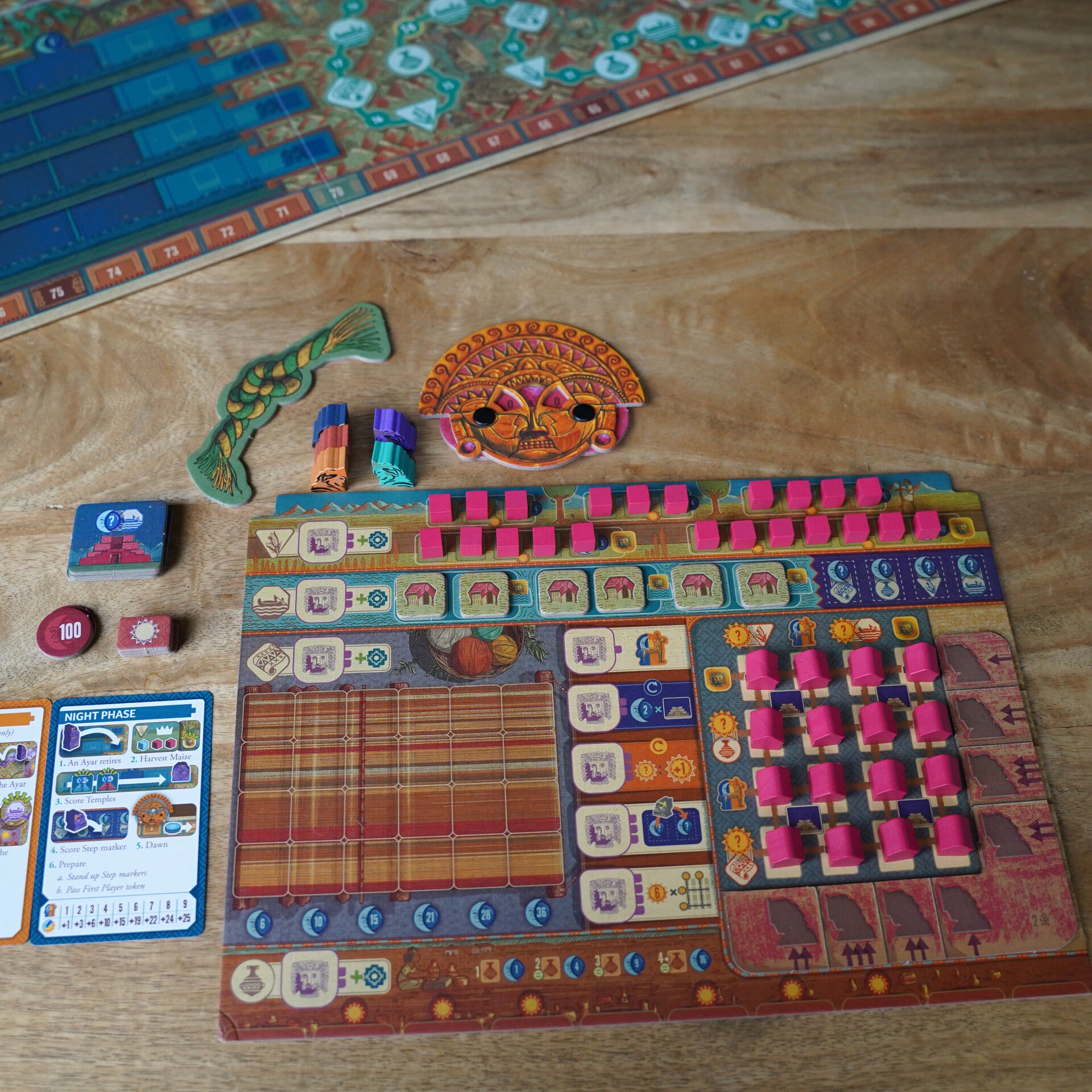 In Ayar probeer je de meeste punten te scoren, maar hier zit een twist aan. Je scoort namelijk zon- en maanpunten. Maar aan het einde van het spel telt alleen je laagste score.