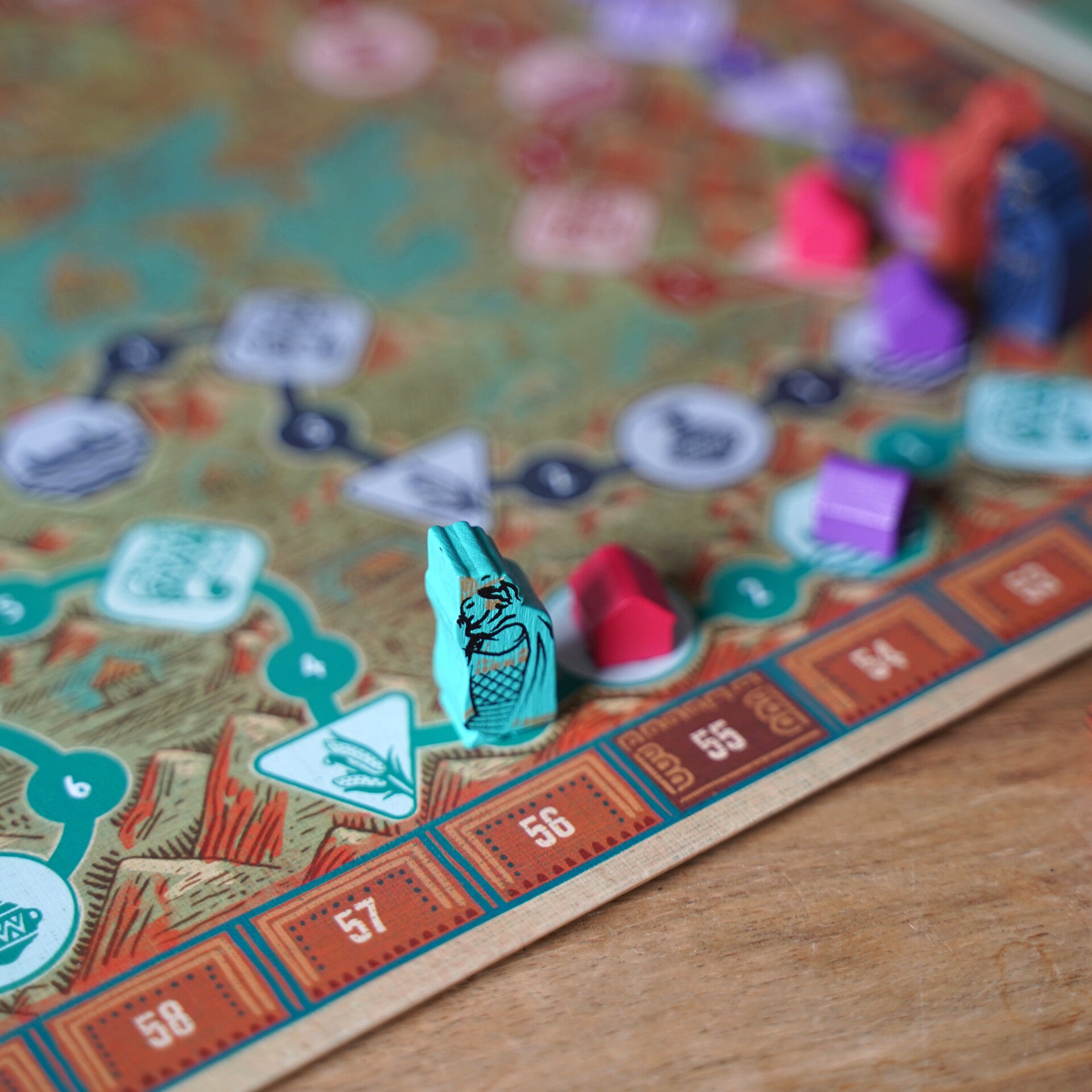 Tot slot is er de reisactie, die misschien wel het meest thematisch aanvoelt. Tijdens deze actie verplaats je je over het bord en bouw je nieuwe structuren, waarmee je jezelf extra mogelijkheden geeft voor de rest van het spel. Het voelt een beetje als investeren: je levert nu iets in, maar krijgt daar later meer flexibiliteit en kracht voor terug. Juist deze actie zorgt ervoor dat je strategie zich kan ontwikkelen en aanpassen gedurende het spel.